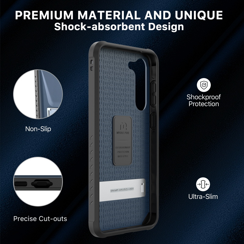 EMBEDDED ULTRA SLIM KICKSTAND-This Samsung Galaxy case with stand can be adjusted to 75°(maximum to 65mm wide) to stand horizontally stablely to meet a variety of life and work scenarios. It offers the most optimal viewing points to watch films and alleviates your neck, wrist pain, definitely the go-to for long-sit office workers.