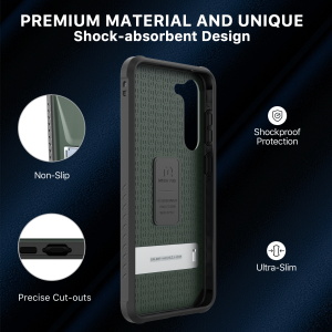 EMBEDDED ULTRA SLIM KICKSTAND-This Samsung Galaxy case with stand can be adjusted to 75°(maximum to 65mm wide) to stand horizontally stablely to meet a variety of life and work scenarios. It offers the most optimal viewing points to watch films and alleviates your neck, wrist pain, definitely the go-to for long-sit office workers.