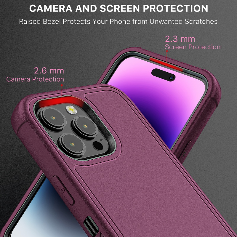 MyBat Pro Maverick Series Case w/ Holster and Tempered Glass for Apple iPhone 14 Pro - Plum