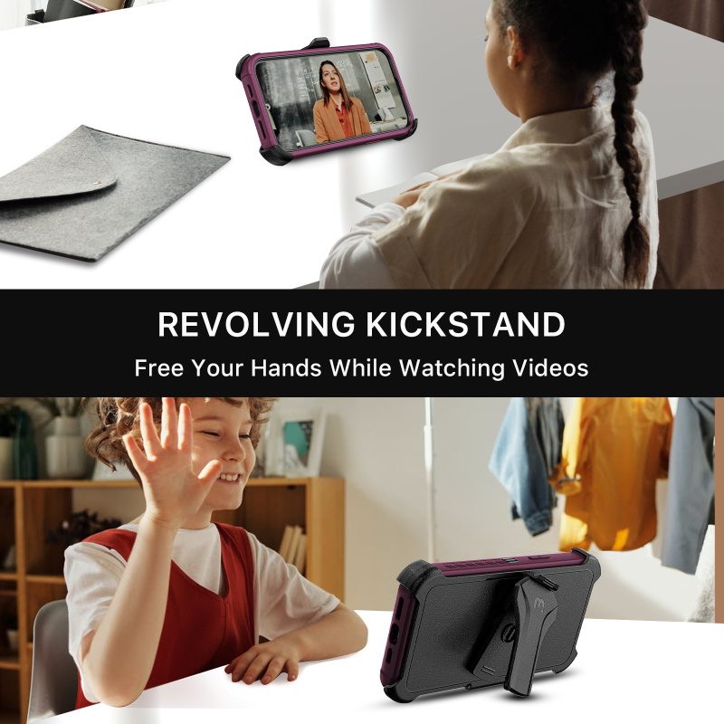 The Maverick Series iPhone 14 Pro (6.1) Case provides the perfect barrier shielding for your customer’s iPhone 14 Pro (6.1) with military-grade protection. The triple-layer construction of the case, including a rugged army green TPE backing shell, an anti-shock polycarbonate inner shell, and a polycarbonate exterior shell, provides the ultimate protection against drops, scratches, and cracks. They will experience the perfect in-hand feel with textured edges and a non-slip bumper grip for easy access to all buttons and ports. They can also attach the Maverick Series iPhone 14 Pro (6.1) Case and go anywhere using the 360° rotating holster clip or set it down and use it as a kickstand for convenient hands-free viewing. Designed from anti-microbial materials, the Maverick Series iPhone 14 Pro (6.1) Case can ward off any threat, even microscopic. Customers will also experience diamond-level coverage with the included high-grade tempered glass screen protector, boasting a 9H hardness keeping theiriPhone 14 Pro (6.1) screen safe and pristine!