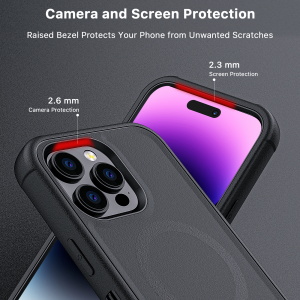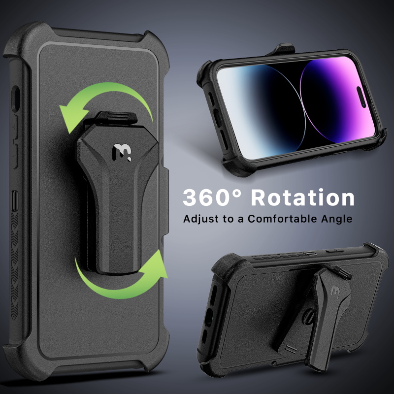 Textured edges and a slip-resistant bumper grip offer a comfortable and secure hold, facilitating easy access to all essential functions and enhancing their efficiency. The modern MagSafe-compatible magnetic ring facilitates effortless attachment to metallic surfaces, accessories, and mounts, streamlining their productivity. The inclusion of a 360° rotating holster clip and kickstand provides unparalleled convenience, catering to their on-the-go demands.