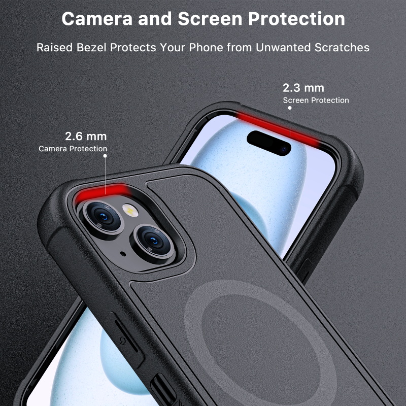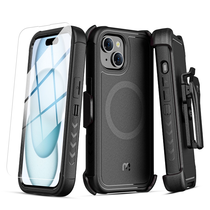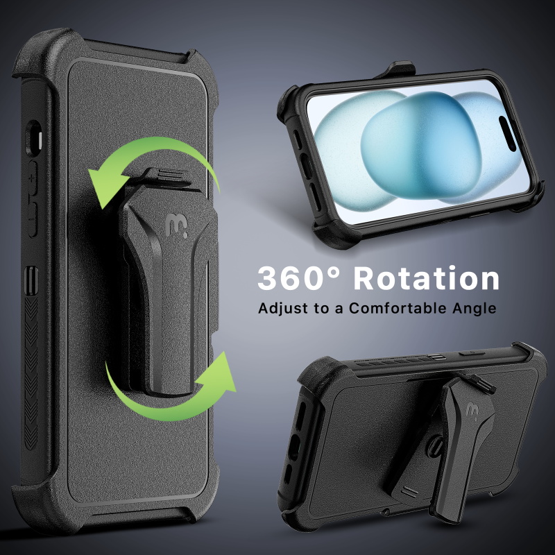 Textured edges and a slip-resistant bumper grip offer a comfortable and secure hold, facilitating easy access to all essential functions and enhancing their efficiency. The modern MagSafe-compatible magnetic ring facilitates effortless attachment to metallic surfaces, accessories, and mounts, streamlining their productivity. The inclusion of a 360° rotating holster clip and kickstand provides unparalleled convenience, catering to their on-the-go demands.