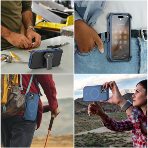 Textured edges and a slip-resistant bumper grip offer a comfortable and secure hold, facilitating easy access to all essential functions and enhancing their efficiency. The modern MagSafe-compatible magnetic ring facilitates effortless attachment to metallic surfaces, accessories, and mounts, streamlining their productivity. The inclusion of a 360° rotating holster clip and kickstand provides unparalleled convenience, catering to their on-the-go demands.