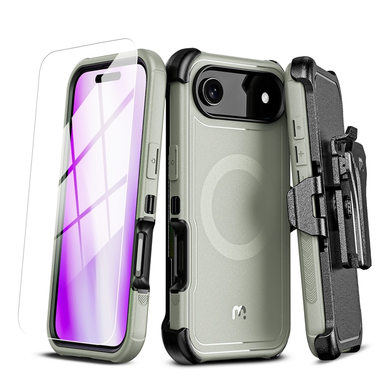 MyBat Pro Maverick Series MagSafe Case w/ Holster and Tempered Glass for Apple iPhone Air - Grey