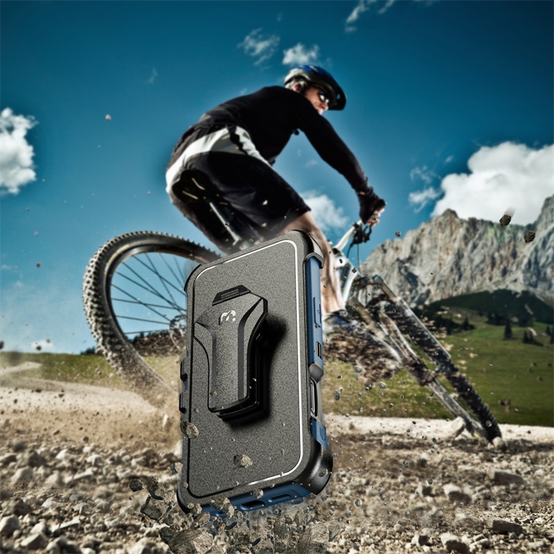 Textured edges and a slip-resistant bumper grip offer a comfortable and secure hold, facilitating easy access to all essential functions and enhancing their efficiency. The modern MagSafe-compatible magnetic ring facilitates effortless attachment to metallic surfaces, accessories, and mounts, streamlining their productivity. The inclusion of a 360° rotating holster clip and kickstand provides unparalleled convenience, catering to their on-the-go demands.