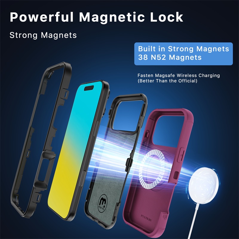 Textured edges and a slip-resistant bumper grip offer a comfortable and secure hold, facilitating easy access to all essential functions and enhancing their efficiency. The modern MagSafe-compatible magnetic ring facilitates effortless attachment to metallic surfaces, accessories, and mounts, streamlining their productivity. The inclusion of a 360° rotating holster clip and kickstand provides unparalleled convenience, catering to their on-the-go demands.