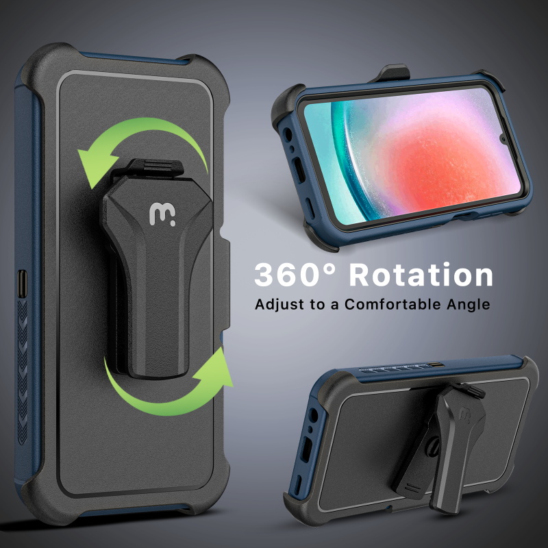 The Maverick Series Galaxy A15 5G Case provides the perfect barrier shielding for your customer’s Galaxy A15 5G with military-grade protection. The triple-layer construction of the case, including a rugged black TPE backing shell, an anti-shock polycarbonate inner shell, and a polycarbonate exterior shell, provides the ultimate protection against drops, scratches, and cracks. They will experience the perfect in-hand feel with textured edges and a non-slip bumper grip for easy access to all buttons and ports. They can also attach the Maverick Series Galaxy A15 5G Case and go anywhere using the 360° rotating holster clip or set it down and use it as a kickstand for convenient hands-free viewing. Designed from anti-microbial materials, the Maverick Series Galaxy A15 5G Case can ward off any threat, even microscopic.