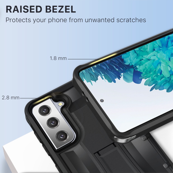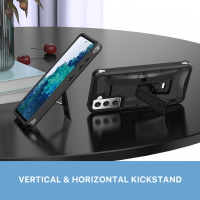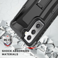 The Warrior Series Case gives your customers Galaxy S21 Plus the fiercest line of defense against drops, falls, and scratches! This dual-layer, certified military-grade case features a rugged black polycarbonate outer shell and padded TPU interior shell, providing up to 2X the protection and durability of standard cases. The Warrior Series Case features shock-absorbing corners, raised bezel edges, and texturized ridges to ensure additional safety while compact for easy access to all buttons and ports. Using the 360° rotating holster clip, customers can clip the case to their pockets and go anywhere, or they can set down their Galaxy S21 Plus and use the integrated kickstand for hands-free viewing. Customers will also experience diamond-level coverage with the included high-grade tempered glass screen protector, boasting a 9H hardness keeping their Galaxy S21 Plus screen safe and pristine!