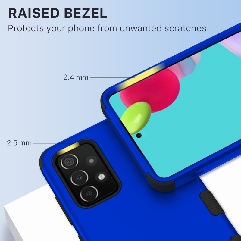 Toughen up your customer's Galaxy A52 5G with military-grade protection. The Tuff Series Galaxy A52 5G Cases' triple-layer design features a blue, rugged polycarbonate outer shell and a padded silicone inner shell for maximum protection from drops, bumps, and scratches. The Tuff Series Galaxy A52 5G Case also features raised edges and textured non-slip ridges for added safety and support while remaining compact for easy access to all buttons and ports. The case is compatible with all wireless chargers, and its ultra-slim and lightweight design mean customers won't have to remove it every time they need to charge!