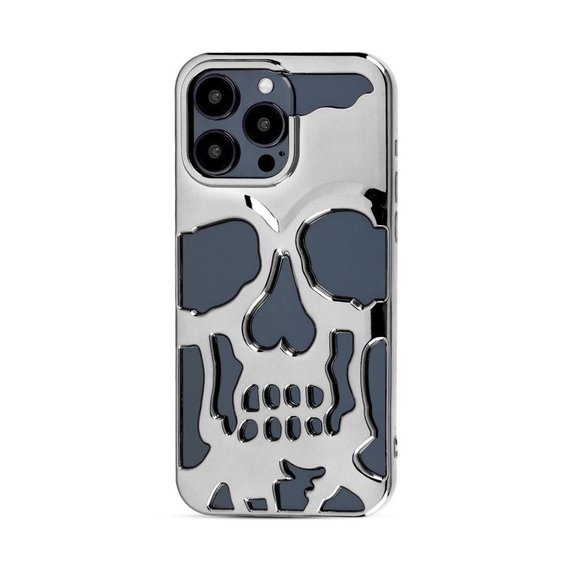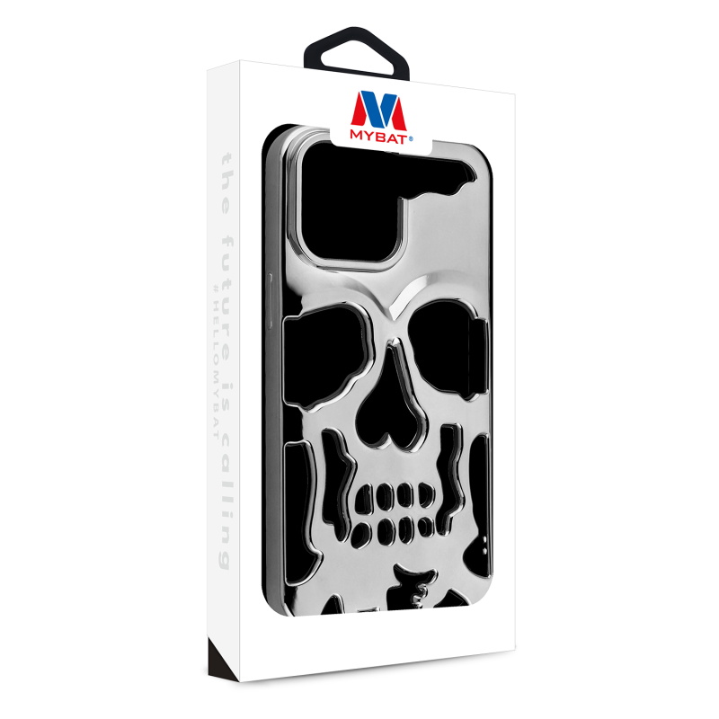 MyBat Skullcap Protector Cover for Apple iPhone 15 Pro Max - Silver Plating