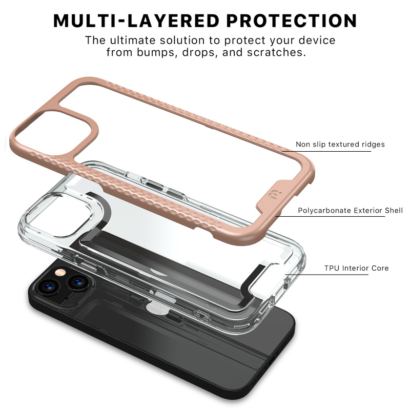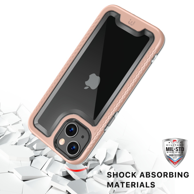 Designed for those who are drawn to beauty over complexity, the modern and sleek Lux cases will display the regal color of your customer’s iPhone 13 mini with a fully transparent backing. Protect your customer's iPhone 13 mini from scratches, bumps, and drops with this stylish dual-layer design, a rose gold polycarbonate outer shell, and a padded TPU inner shell with 2X the durability of standard cases. The Lux clear case feature raised bezel edges and texturized ridged edges for additional safety while providing your customers easy access to all buttons and ports. The ultra-slim and lightweight design make it compatible with all wireless chargers, so they don’t have to remove the case every time they need to power up! The included high-grade tempered glass screen protector provides diamond-level protection, boasting an incredible 9H hardness and raised bezel edges to keep your customer's screen safe and pristine!
