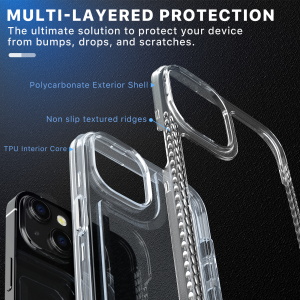 Designed for those who are drawn to beauty over complexity, the modern and sleek Lux cases will display the regal color of your customer’s iPhone 14 Plus (6.7) with a fully transparent backing. Protect your customer's iPhone 14 Plus (6.7) from scratches, bumps, and drops with this stylish dual-layer design, a clear polycarbonate outer shell, and a padded TPU inner shell with 2X the durability of standard cases. The Lux clear case feature raised bezel edges and texturized ridged edges for additional safety while providing your customers easy access to all buttons and ports. The ultra-slim and lightweight design make it compatible with all wireless chargers, so they don’t have to remove the case every time they need to power up! The included high-grade tempered glass screen protector provides diamond-level protection, boasting an incredible 9H hardness and raised bezel edges to keep your customer's screen safe and pristine!