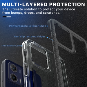 Designed for those who are drawn to beauty over complexity, the modern and sleek Lux cases will display the regal color of your customer’s Moto G 5G (2023) with a fully transparent backing. Protect your customer's Moto G 5G (2023) from scratches, bumps, and drops with this stylish dual-layer design, a black polycarbonate outer shell, and a padded TPU inner shell with 2X the durability of standard cases. The Lux clear case feature raised bezel edges and texturized ridged edges for additional safety while providing your customers easy access to all buttons and ports. Compatible with all wireless chargers, the ultra-slim and lightweight design makes it so they don’t have to remove the case every time they need to power up!