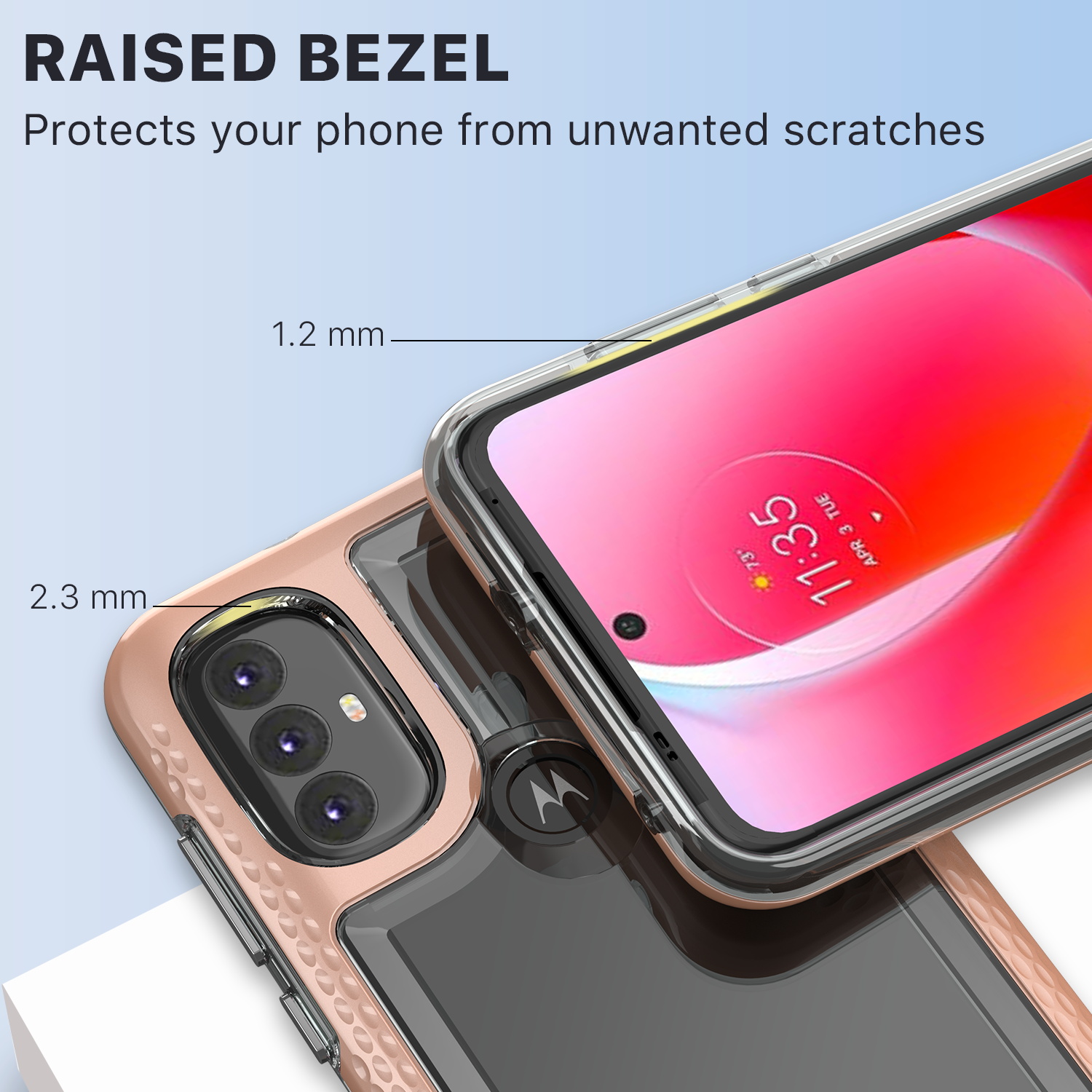 Designed for those drawn to beauty over complexity, the modern and sleek Lux cases will display the regal color of your customer’s Moto G Power (2022) with fully transparent backing. Protect your customer's Moto G Power (2022) from scratches, bumps, and drops with this stylish dual-layer design, a rose gold polycarbonate outer shell, and a padded TPU inner shell with 2X the durability of standard cases. The Lux clear case feature raised bezel edges and texturized ridged edges for additional safety while providing your customers easy access to all buttons and ports. The ultra-slim and lightweight design make it compatible with all wireless chargers, so they don’t have to remove the case when they need to power up! The included high-grade tempered glass screen protector provides diamond-level protection, boasting an incredible 9H hardness and raised bezel edges to keep your customer's screen safe and pristine!