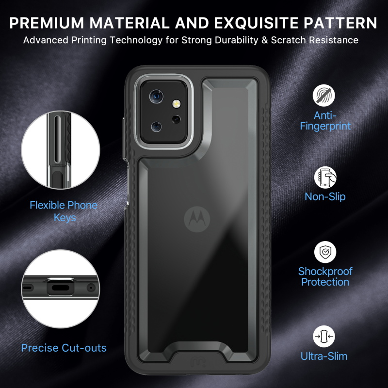 Designed for those who are drawn to beauty over complexity, the modern and sleek Lux cases will display the regal color of your customer’s Moto G Power 5G (2023) with a fully transparent backing. Protect your customer's Moto G Power 5G (2023) from scratches, bumps, and drops with this stylish dual-layer design, a black polycarbonate outer shell, and a padded TPU inner shell with 2X the durability of standard cases. The Lux clear case feature raised bezel edges and texturized ridged edges for additional safety while providing your customers easy access to all buttons and ports. Compatible with all wireless chargers, the ultra-slim and lightweight design makes it so they don’t have to remove the case every time they need to power up!