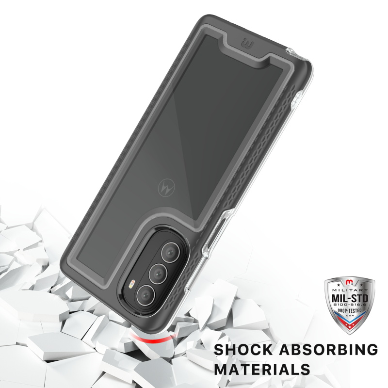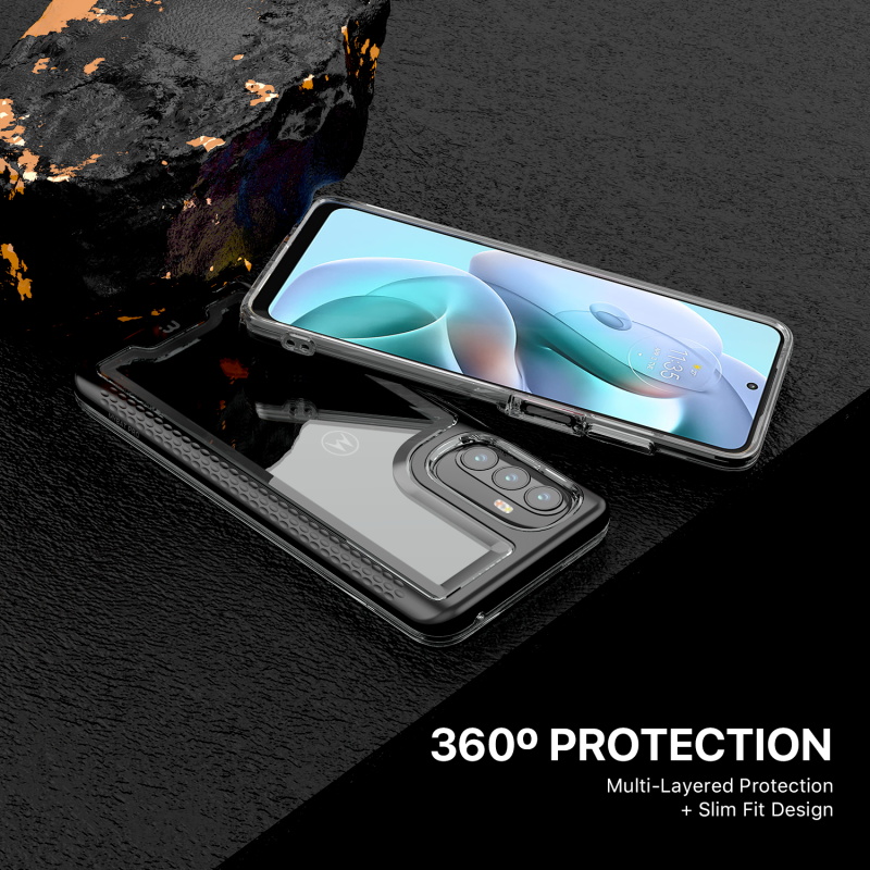 Designed for those drawn to beauty over complexity, the modern and sleek Lux cases will display the regal color of your customer’s Moto 5G (2022) with fully transparent backing. Protect your customer's Moto 5G (2022) from scratches, bumps, and drops with this stylish dual-layer design, a black polycarbonate outer shell, and a padded TPU inner shell with 2X the durability of standard cases. The Lux clear case feature raised bezel edges and texturized ridged edges for additional safety while providing your customers easy access to all buttons and ports. The ultra-slim and lightweight design make it compatible with all wireless chargers, so they don’t have to remove the case when they need to power up! The included high-grade tempered glass screen protector provides diamond-level protection, boasting an incredible 9H hardness and raised bezel edges to keep your customer's screen safe and pristine!