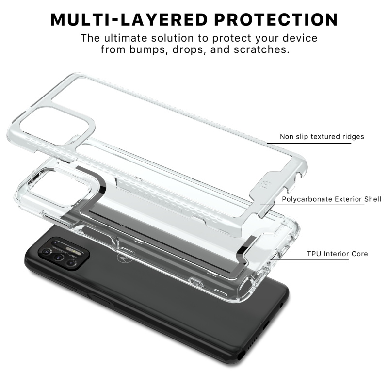 Designed for those drawn to beauty over complexity, the modern and sleek Lux cases will display the regal color of your customer’s Moto G Stylus (2021) with fully transparent backing. Protect your customer's Moto G Stylus (2021) from scratches, bumps, and drops with this stylish dual-layer design, a clear polycarbonate outer shell, and a padded TPU inner shell with 2X the durability of standard cases. The Lux clear case feature raised bezel edges and texturized ridged edges for additional safety while providing your customers easy access to all buttons and ports. The ultra-slim and lightweight design make it compatible with all wireless chargers, so they don’t have to remove the case when they need to power up! The included high-grade tempered glass screen protector provides diamond-level protection, boasting an incredible 9H hardness and raised bezel edges to keep your customer's screen safe and pristine!