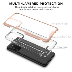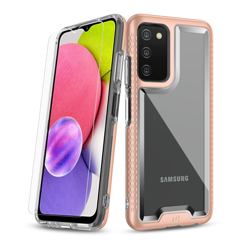 Designed for those who are drawn to beauty over complexity, the modern and sleek Lux cases will display the regal color of your customer’s Galaxy A03s or Galaxy A037U with a fully transparent backing. Protect your customer's Galaxy A03s or Galaxy A037U from scratches, bumps, and drops with this stylish dual-layer design, a rose gold polycarbonate outer shell, and a padded TPU inner shell with 2X the durability of standard cases. The Lux clear case feature raised bezel edges and texturized ridged edges for additional safety while providing your customers easy access to all buttons and ports. Compatible with all wireless chargers, the ultra-slim and lightweight design makes it so they don’t have to remove the case every time they need to power up! The included high-grade tempered glass screen protector provides diamond-level protection, boasting an incredible 9H hardness and raised bezel edges to keep your customer's screen safe and pristine!