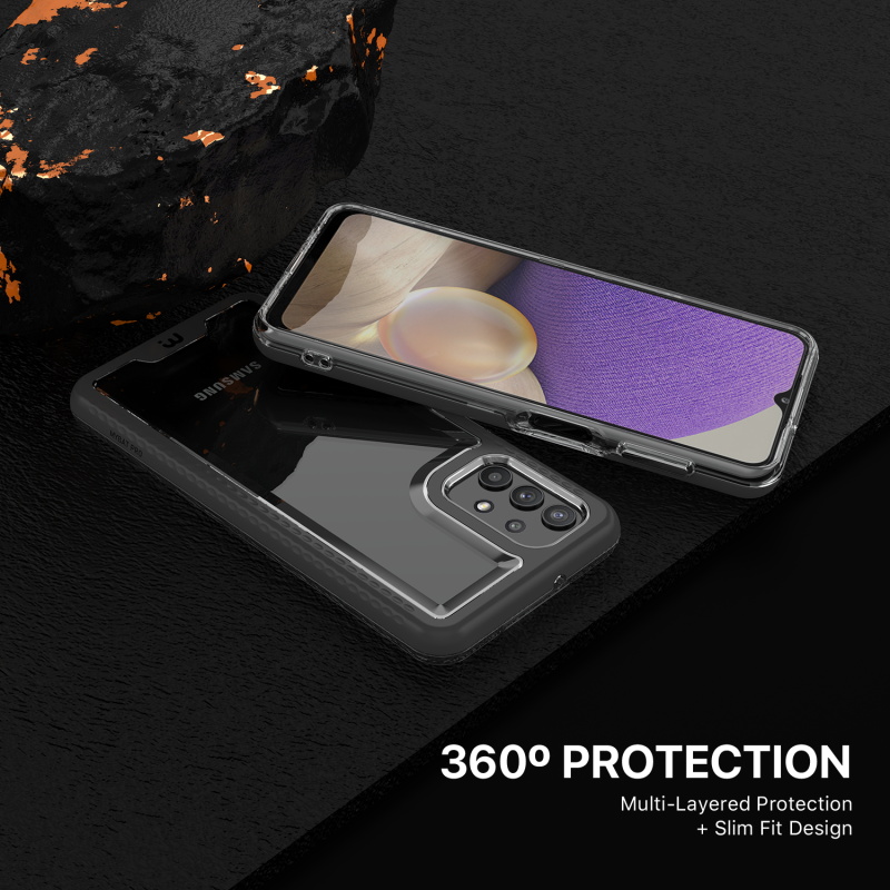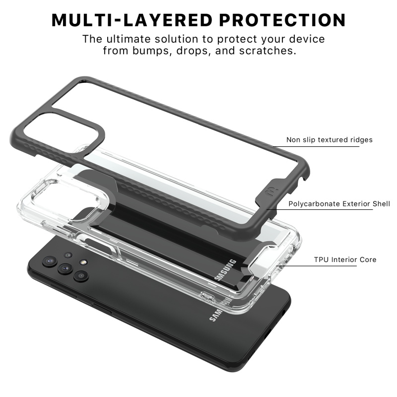 Designed for those who are drawn to beauty over complexity, the modern and sleek Lux cases will display the regal color of your customer’s Galaxy A32 5G with a fully transparent backing. Protect your customer's Galaxy A32 5G from scratches, bumps, and drops with this stylish dual-layer design, a black polycarbonate outer shell, and a padded TPU inner shell with 2X the durability of standard cases. The Lux clear case feature raised bezel edges and texturized ridged edges for additional safety while providing your customers easy access to all buttons and ports. Compatible with all wireless chargers, the ultra-slim and lightweight design makes it so they don’t have to remove the case every time they need to power up! The included high-grade tempered glass screen protector provides diamond-level protection, boasting an incredible 9H hardness and raised bezel edges to keep your customer's screen safe and pristine!