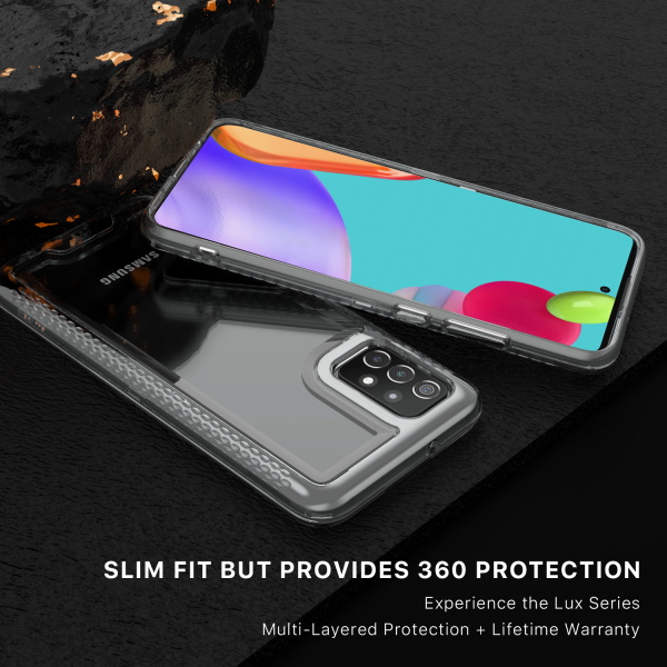 Designed for those who are drawn to beauty over complexity, the modern and sleek Lux cases will display the regal color of your customer’s Galaxy A52 5G with a fully transparent backing. Protect your customer's Galaxy A52 5G from scratches, bumps, and drops with this stylish dual-layer design, a clear polycarbonate outer shell, and a padded TPU inner shell with 2X the durability of standard cases. The Lux clear case feature raised bezel edges and texturized ridged edges for additional safety while providing your customers easy access to all buttons and ports. Compatible with all wireless chargers, the ultra-slim and lightweight design makes it so they don’t have to remove the case every time they need to power up! The included high-grade tempered glass screen protector provides diamond-level protection, boasting an incredible 9H hardness and raised bezel edges to keep your customer's screen safe and pristine!