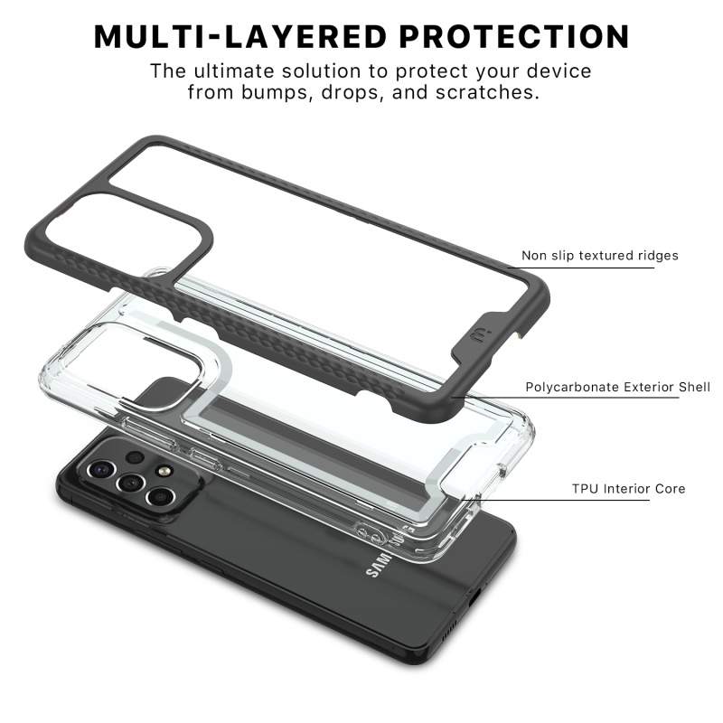 Designed for those who are drawn to beauty over complexity, the modern and sleek Lux cases will display the regal color of your customer’s Galaxy A53 5G with a fully transparent backing. Protect your customer's Galaxy A53 5G from scratches, bumps, and drops with this stylish dual-layer design, a black polycarbonate outer shell, and a padded TPU inner shell with 2X the durability of standard cases. The Lux clear case feature raised bezel edges and texturized ridged edges for additional safety while providing your customers easy access to all buttons and ports. Compatible with all wireless chargers, the ultra-slim and lightweight design makes it so they don’t have to remove the case every time they need to power up! The included high-grade tempered glass screen protector provides diamond-level protection, boasting an incredible 9H hardness and raised bezel edges to keep your customer's screen safe and pristine!