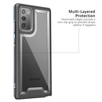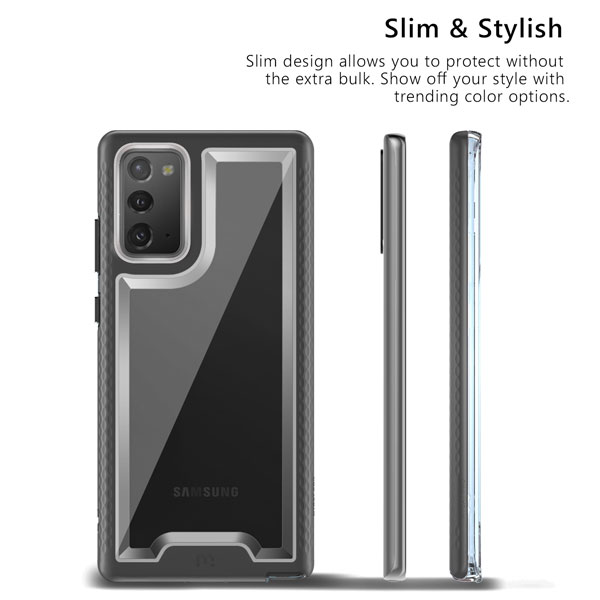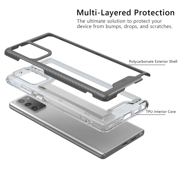 Designed for those who are drawn to beauty over complexity, the modern and sleek Lux cases will display the regal color of your customer’s Galaxy Note 20 with a fully transparent backing. Protect your customer's Galaxy Note 20 from scratches, bumps, and drops with this stylish dual-layer design, a silver polycarbonate outer shell, and a padded TPU inner shell with 2X the durability of standard cases. The Lux clear case feature raised bezel edges and texturized ridged edges for additional safety while providing your customers easy access to all buttons and ports. Compatible with all wireless chargers, the ultra-slim and lightweight design makes it so they don’t have to remove the case every time they need to power up!