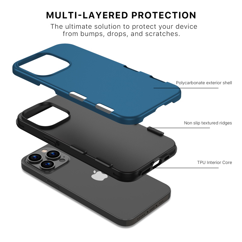 Introducing the Tuff Subs Case, a new, thinner than ever phone case that provides true ruggedness to your customer's iPhone 13 Pro! It's tougher than it looks and takes advantage of everything that makes the classic Tuff Series so popular! Dual-layered protection, a rugged ink blue polycarbonate outer shell, and a rubberized silicone inner shell will provide maximum protection from accidental drops, bumps, and scratches to your customers' iPhone 13 Pro Max. Your customers can easily access all buttons and ports with raised bezel edges and texturized ergonomic ridged edges.