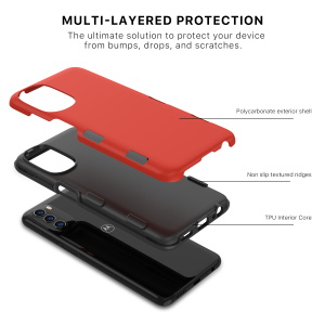 Introducing the Tuff Subs Case, a new, thinner than ever phone case that provides true ruggedness to your customer's Moto G 5G (2022)! It's tougher than it looks and takes advantage of everything that makes the classic Tuff Series so popular! Dual-layered protection, a rugged red polycarbonate outer shell, and a rubberized silicone inner shell will provide maximum protection from accidental drops, bumps, and scratches to your customers' Moto G 5G (2022). Your customers can access all buttons and ports with ease as a result of raised bezel edges and texturized ergonomic ridged edges.