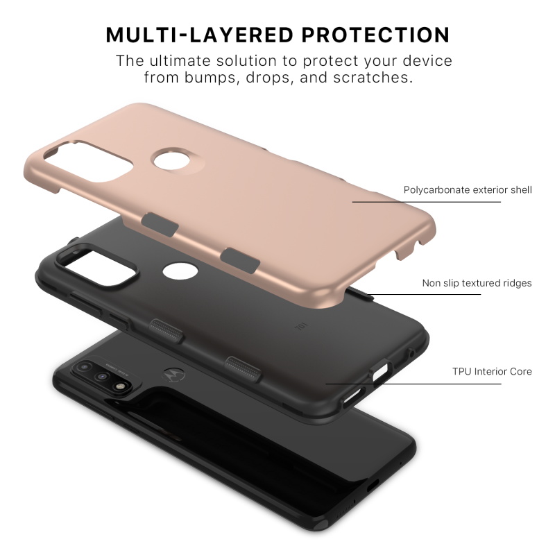 Introducing the Tuff Subs Case, a new, thinner than ever phone case that provides true ruggedness to your customer's Moto G Pure! It's tougher than it looks and takes advantage of everything that makes the classic Tuff Series so popular! Dual-layered protection, a rugged rose gold polycarbonate outer shell, and a rubberized silicone inner shell will provide maximum protection from accidental drops, bumps, and scratches to your customers' Moto G Pure. Your customers can access all buttons and ports with ease as a result of raised bezel edges and texturized ergonomic ridged edges.