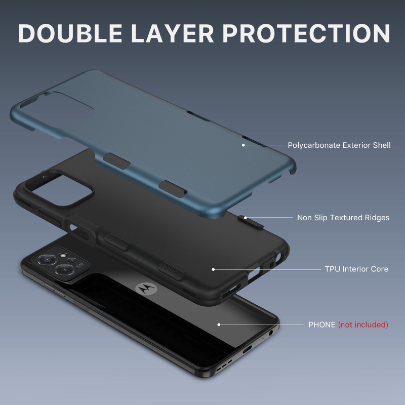 Introducing the Tuff Subs Case, a new, thinner than ever phone case that provides true ruggedness to your customer's Moto G Power 5G (2023)! It's tougher than it looks and takes advantage of everything that makes the classic Tuff Series so popular! Dual-layered protection, a rugged black polycarbonate outer shell, and a rubberized silicone inner shell will provide maximum protection from accidental drops, bumps, and scratches to your customers' Moto G Power 5G (2023). Your customers can access all buttons and ports with ease as a result of raised bezel edges and texturized ergonomic ridged edges.