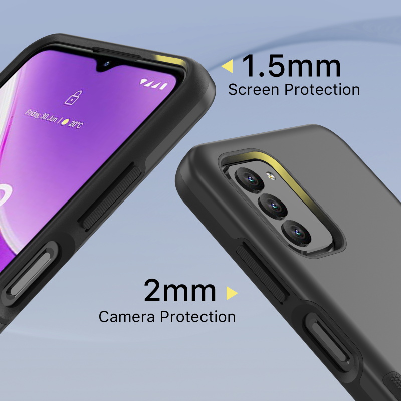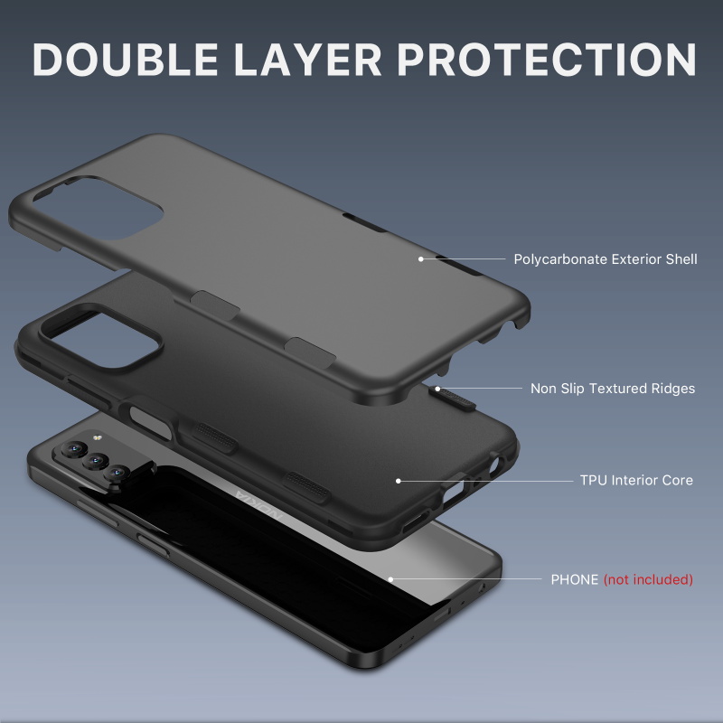 Introducing the Tuff Subs Case, a new, thinner than ever phone case that provides true ruggedness to your customer's Nokia G310! It's tougher than it looks and takes advantage of everything that makes the classic Tuff Series so popular! Dual-layered protection, a rugged black polycarbonate outer shell, and a rubberized silicone inner shell will provide maximum protection from accidental drops, bumps, and scratches to your customers' Nokia G310. Your customers can access all buttons and ports with ease as a result of raised bezel edges and texturized ergonomic ridged edges.
