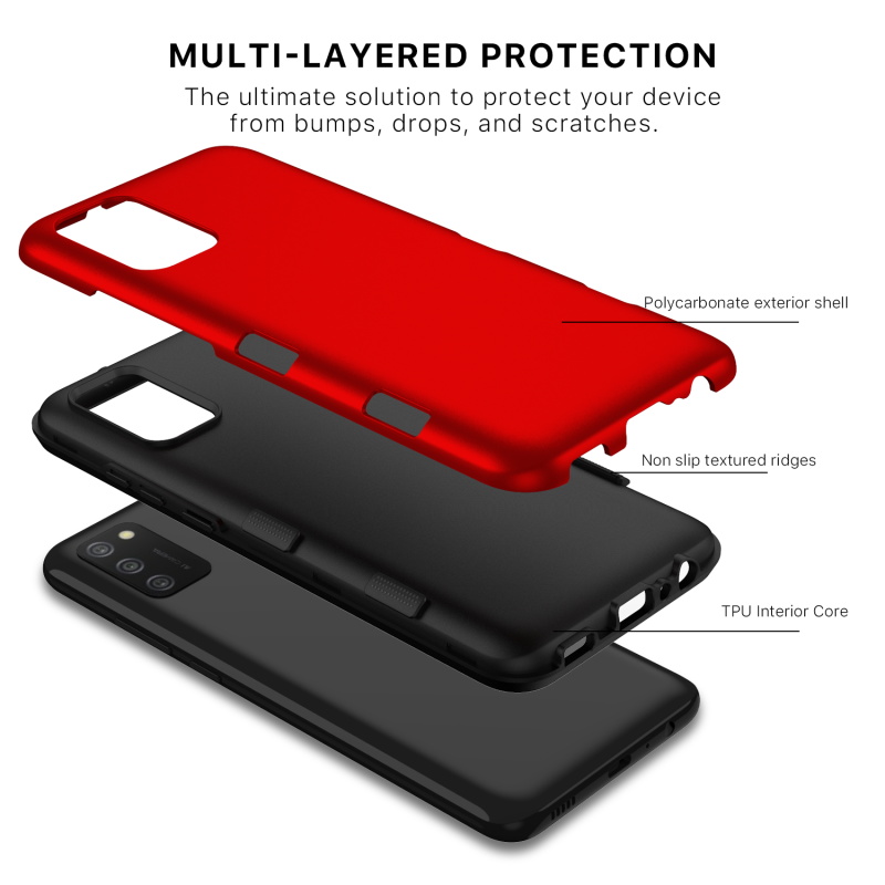 Introducing the Tuff Subs Case, a new, thinner than ever phone case that provides true ruggedness to your customer's Galaxy A02s! It's tougher than it looks and takes advantage of everything that makes the classic Tuff Series so popular! Dual-layered protection, a rugged red polycarbonate outer shell, and a rubberized silicone inner shell will provide maximum protection from accidental drops, bumps, and scratches to your customers' Galaxy A02s. Your customers can access all buttons and ports with ease as a result of raised bezel edges and texturized ergonomic ridged edges.