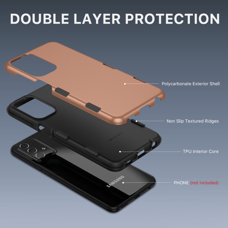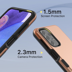 Introducing the Tuff Subs Case, a new, thinner than ever phone case that provides true ruggedness to your customer's Galaxy A23 5G! It's tougher than it looks and takes advantage of everything that makes the classic Tuff Series so popular! Dual-layered protection, a rugged rose gold polycarbonate outer shell, and a rubberized silicone inner shell will provide maximum protection from accidental drops, bumps, and scratches to your customers' Galaxy A23 5G. Your customers can access all buttons and ports with ease as a result of raised bezel edges and texturized ergonomic ridged edges.