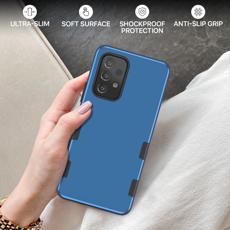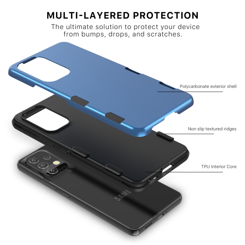 Introducing the Tuff Subs Case, a new, thinner than ever phone case that provides true ruggedness to your customer's Galaxy A53 5G! It's tougher than it looks and takes advantage of everything that makes the classic Tuff Series so popular! Dual-layered protection, a rugged blue polycarbonate outer shell, and a rubberized silicone inner shell will provide maximum protection from accidental drops, bumps, and scratches to your customers' Galaxy A53 5G. Your customers can access all buttons and ports with ease as a result of raised bezel edges and texturized ergonomic ridged edges.
