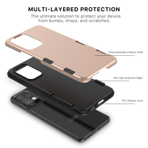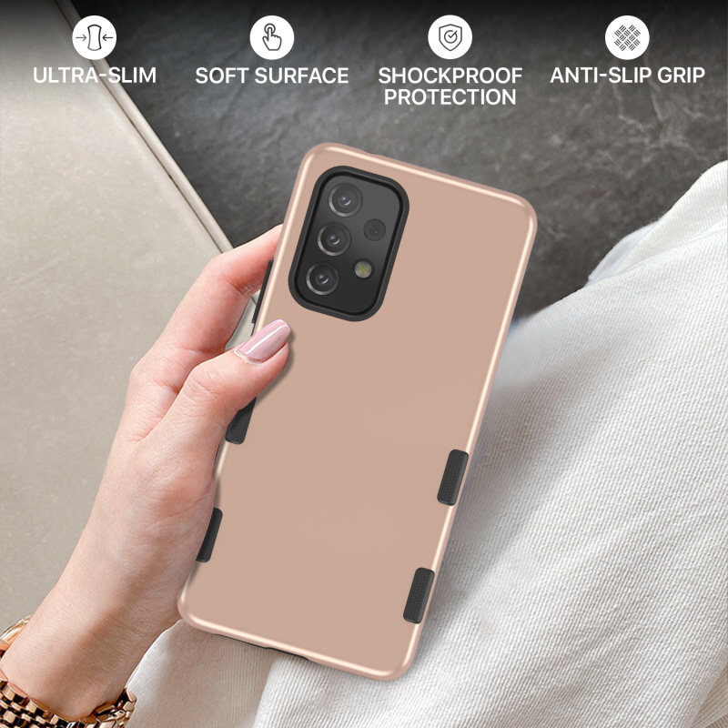 Introducing the Tuff Subs Case, a new, thinner than ever phone case that provides true ruggedness to your customer's Galaxy A53 5G! It's tougher than it looks and takes advantage of everything that makes the classic Tuff Series so popular! Dual-layered protection, a rugged rose gold polycarbonate outer shell, and a rubberized silicone inner shell will provide maximum protection from accidental drops, bumps, and scratches to your customers' Galaxy A53 5G. Your customers can access all buttons and ports with ease as a result of raised bezel edges and texturized ergonomic ridged edges.
