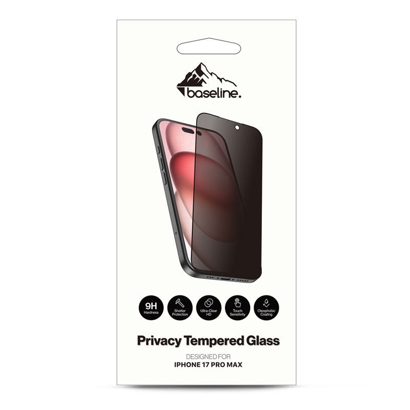 HOME:   Apple -> iPhone 17 Pro Max -> Tempered Glass->baseline Privacy Full Coverage Tempered Glass Screen Protector for Apple iPhone 17 Pro Max - Black