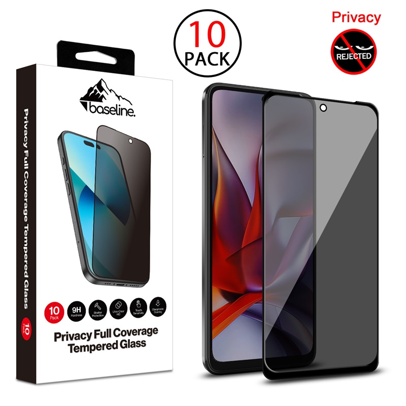 Tempered Glass->baseline Privacy Full Coverage Tempered Glass Screen Protector (10-pack) for Motorola Moto G 5G (2025) - Black