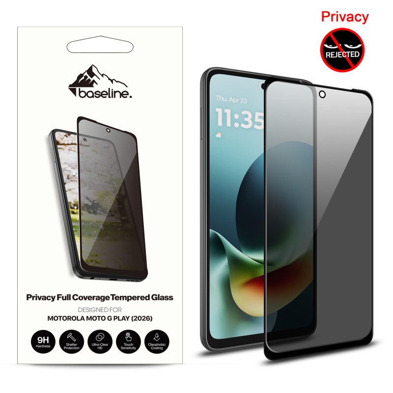 baseline Privacy Full Coverage Tempered Glass Screen Protector for Motorola Moto G Play (2026) - Black