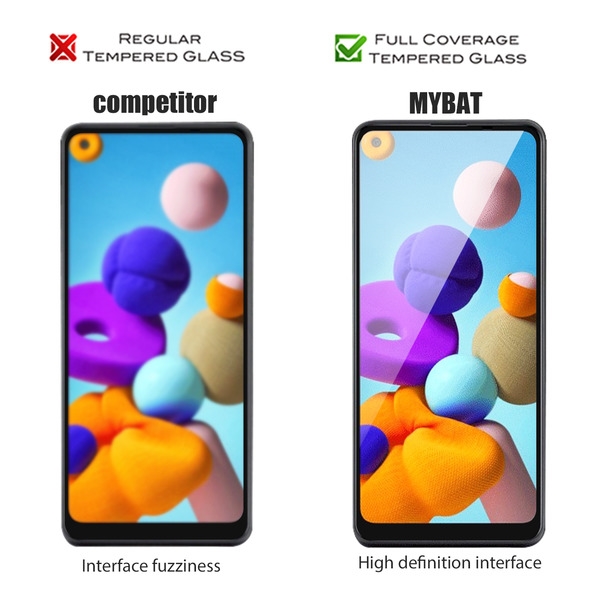 • Get the ultimate double-edged protection with the high-performing MYBAT Tempered Glass Screen Protector for the curvaceous SAM-Galaxy A21