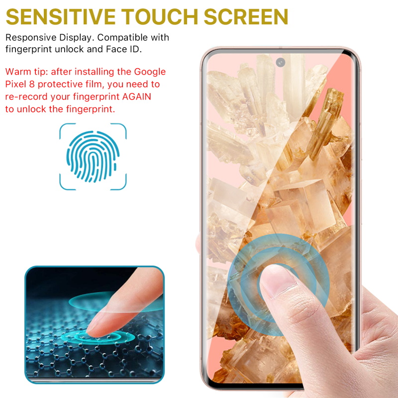 MyBat Pro’s Pixel 8 Full Curve Coverage Tempered Glass Screen Protector offers your customer’s phone a comprehensive curved multi-layered defense 5X stronger than standard glass while delivering diamond level 9H hardness. Installing it is easy and leaves no air bubbles or distortions, only high-definition clarity. Despite being only 0.33mm thick and extremely lightweight, customers' Pixel 8 screens will have maximum scratch, drop, impact, and shatter protection. EZ Fingerprint Unlock makes it easy for your customers to access their phone at any time while the premium oleophobic coating ensures they'll never have to worry about smudges, fingerprints, or dirt littering their screen. The Pixel 8 Full Curve Coverage Tempered Glass Screen Protector offers a perfect fit without limiting any touch sensitivity, even with a case on.