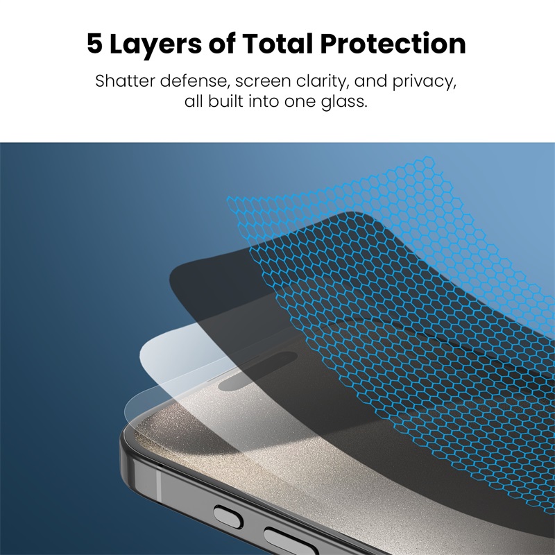 Keep your screen private, protected, and backed for life with a three-pack of ultra-tough tempered glass. Designed with two-way privacy technology, it blocks unwanted side glances while maintaining HD clarity for a flawless viewing experience. Constructed with diamond-level 9H hardness, it’s 5X stronger than standard glass, delivering superior scratch resistance, shatterproof durability, and seamless edge-to-edge coverage. With bubble-free activation, application is smooth and effortless—helping you keep your screen pristine and your privacy intact. Plus, it's backed by a lifetime warranty for complete peace of mind.
