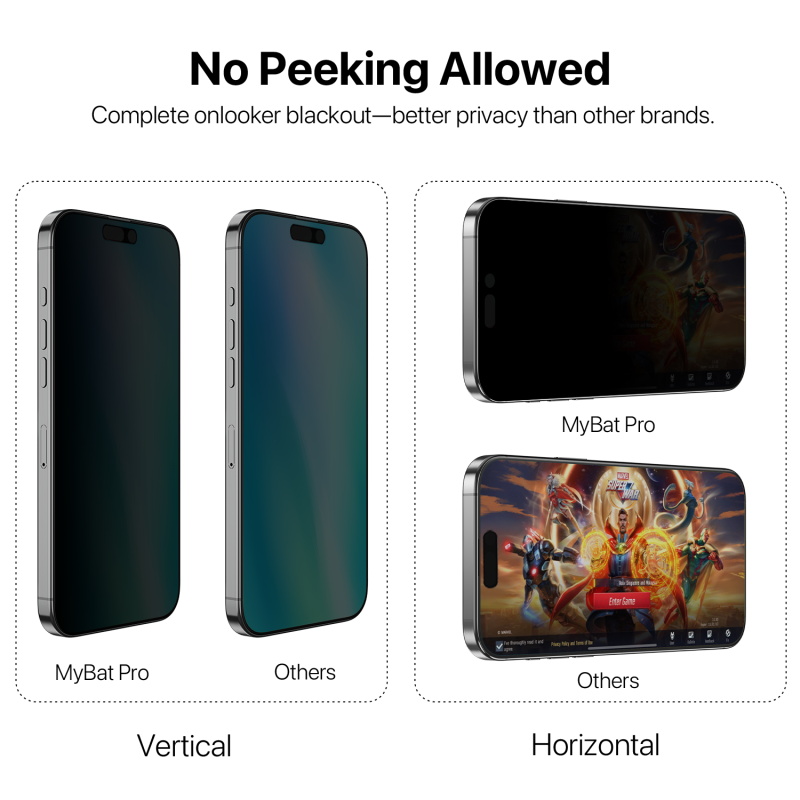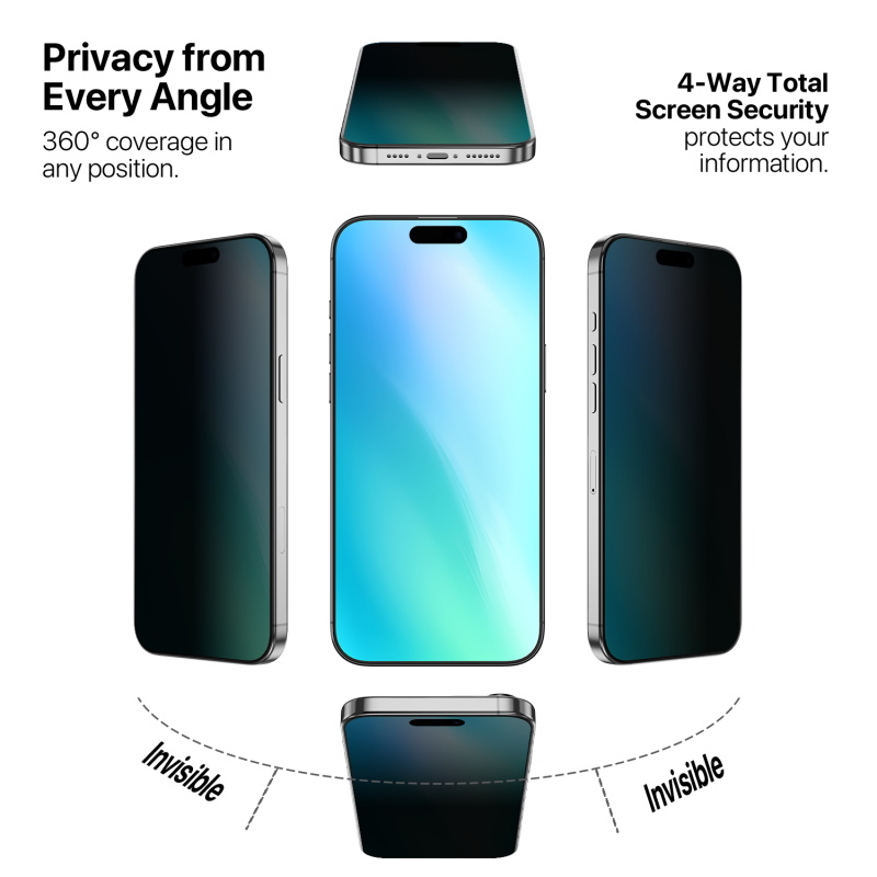 Protect your personal information with the MyBat Pro 360° Privacy Tempered Glass Screen Protector. Designed with advanced 4-way privacy technology, it shields your screen from prying eyes in any orientation—whether vertical, horizontal, or diagonal. With 9H diamond-level hardness, this tempered glass offers unbeatable protection against scratches, cracks, and shattering while maintaining crystal-clear clarity for everyday use.  Elevate your screen protection with superior privacy and durability.