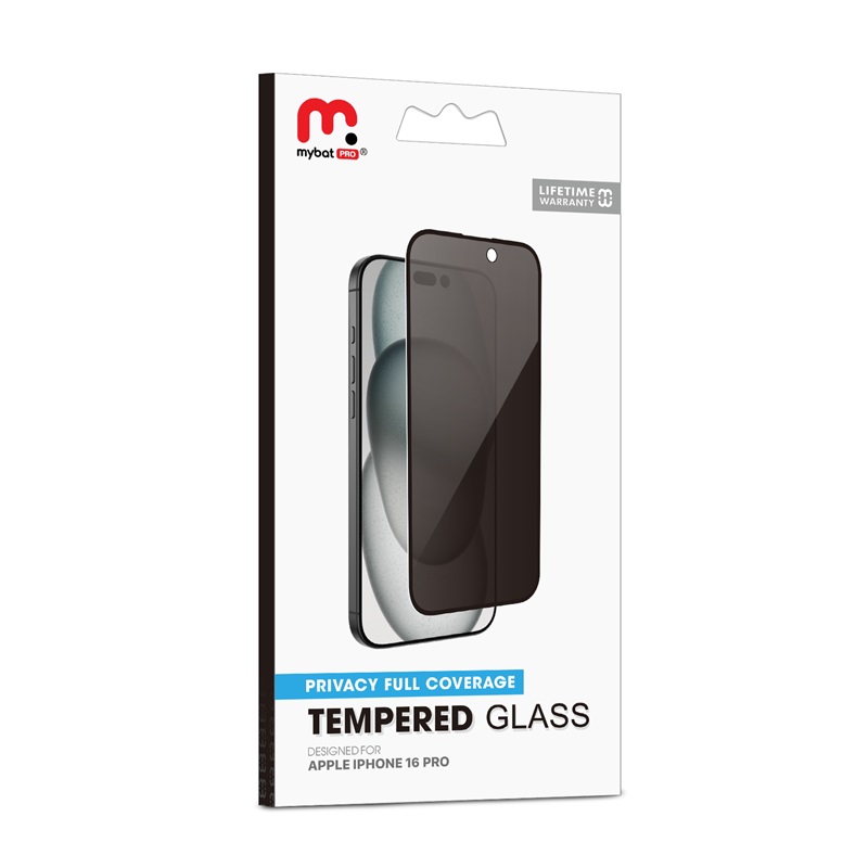 HOME:   Apple -> iPhone 16 Pro -> Tempered Glass->MyBat Pro Privacy Full Coverage Tempered Glass Screen Protector for Apple iPhone 16 Pro - Black
