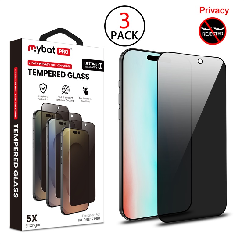 HOME:   Apple -> iPhone 17 Pro -> Tempered Glass->MyBat Pro Privacy Full Coverage Tempered Glass Screen Protector (3-pack) for Apple iPhone 17 Pro - Black