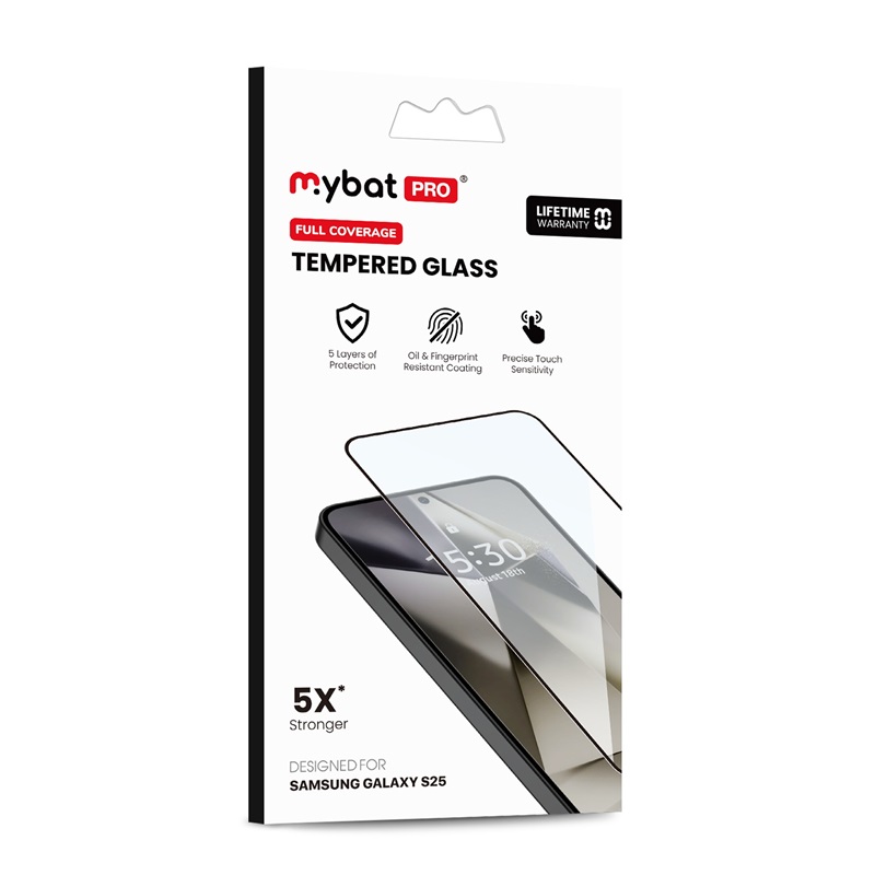 MyBat Pro’s Galaxy S25 / Galaxy S24 Full Curve Coverage Tempered Glass Screen Protector offers your customer’s phone a comprehensive curved multi-layered defense 5X stronger than standard glass while delivering diamond level 9H hardness. Installing it is easy and leaves no air bubbles or distortions, only high-definition clarity. Despite being only 0.33mm thick and extremely lightweight, customers' Galaxy S25 / Galaxy S24 screens will have maximum scratch, drop, impact, and shatter protection. EZ Fingerprint Unlock makes it easy for your customers to access their phone at any time while the premium oleophobic coating ensures they'll never have to worry about smudges, fingerprints, or dirt littering their screen. The Galaxy S25 / Galaxy S24 Full Curve Coverage Tempered Glass Screen Protector offers a perfect fit without limiting any touch sensitivity, even with a case on.