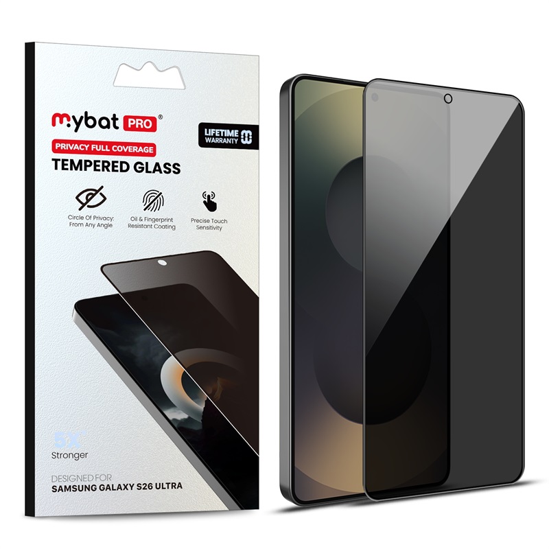 HOME:   Samsung -> Galaxy S26 Ultra -> Tempered Glass->MyBat Pro Privacy Full Coverage Tempered Glass Screen Protector (Fingerprint Unlock) for Samsung Galaxy S26 Ultra - Black