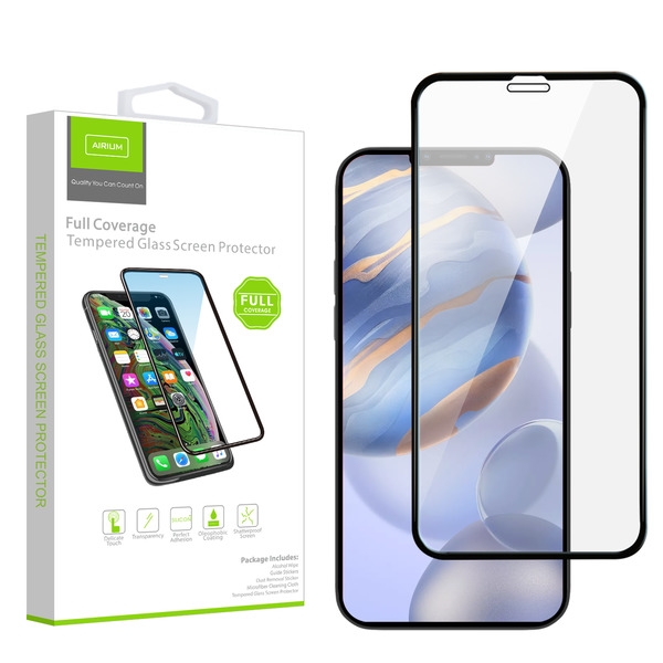 HOME:   Apple -> iPhone 12 -> Tempered Glass->Airium Full Coverage Tempered Glass Screen Protector for Apple iPhone 12 / 12 Pro - Black