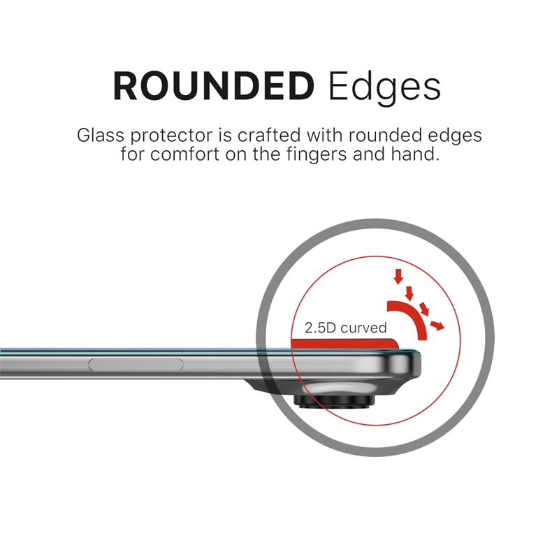 • Polished, rounded-edge design offers a smooth feel to the perimeter while providing ultimate impact protection to the screen.