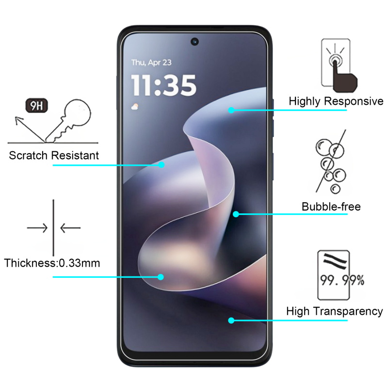 MyBat ’s Moto G 5G 2026 / G 5G 2025 / G Play 2026 Tempered Glass Screen Protector offers your customer’s phone a complete multi-layer defense 5X stronger than standard glass while delivering diamond level 9H hardness. Installing it is easy and leaves no air bubbles or distortions, only high-definition clarity. Despite being only 0.33mm thick and extremely lightweight, customers' Moto G 5G 2026 / G 5G 2025 / G Play 2026 screens will have maximum scratch, drop, impact, and shatter protection. The oleophobic coating will ensure that they will never have to worry about smudges, fingerprints, or dirt littering their screen again. The Moto G 5G 2026 / G 5G 2025 / G Play 2026 Tempered Glass Screen Protector offers a perfect fit without limiting any touch sensitivity, even with a case on.