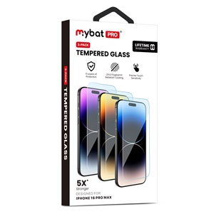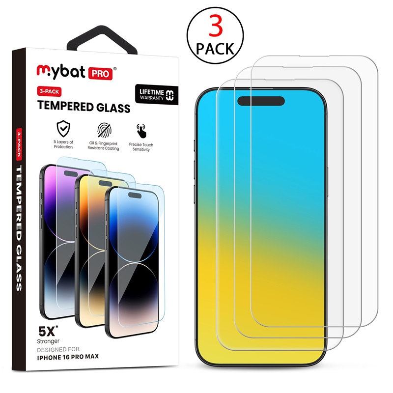 HOME:   Apple -> iPhone 16 Pro Max -> Tempered Glass->MyBat Pro Tempered Glass Screen Protector (2.5D)(3-pack) for Apple iPhone 16 Pro Max - Clear